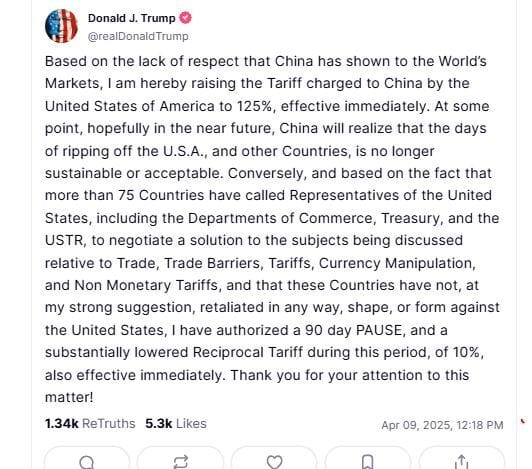 As I was writing this article, Trump announced a 90-day pause on all tariffs, with the exception of China, EU, Mexico and Canada.