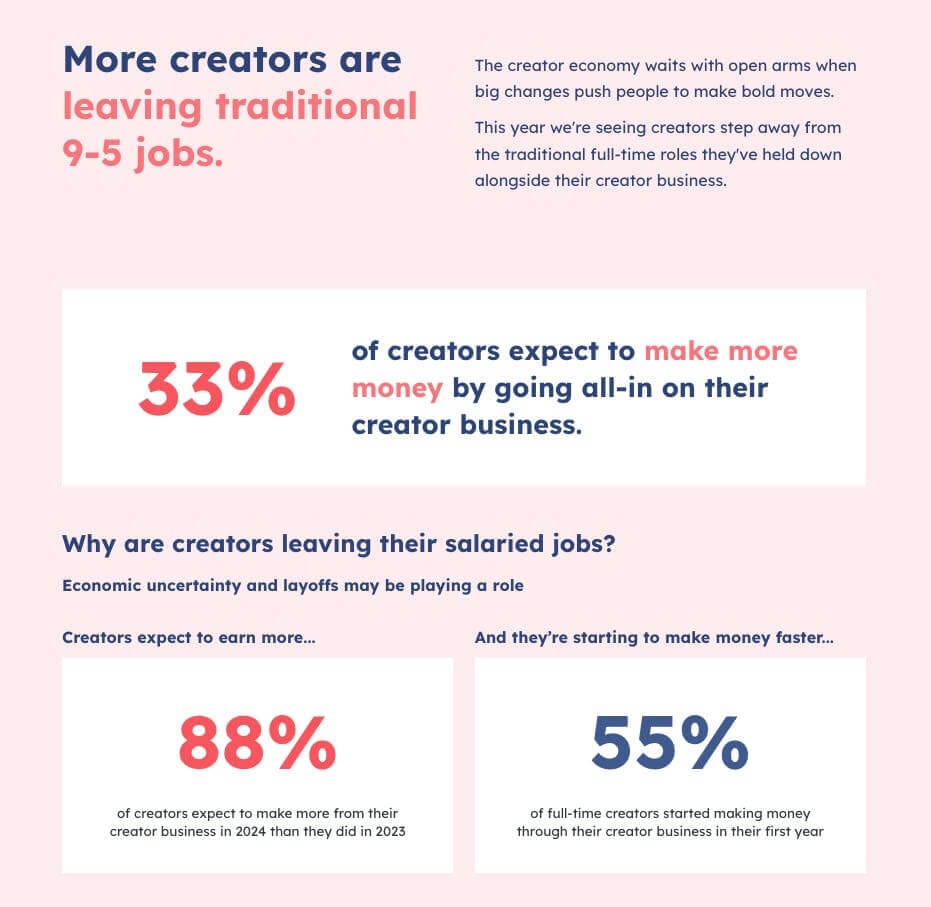 Data courtesy of ConvertKit’s State of the Creator Economy Report 2024