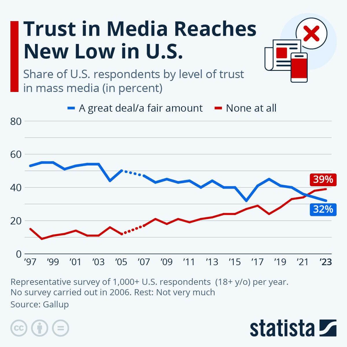 Trust in US Media is declining. Hard to find global data on this, but it shouldn’t be difficult to extrapolate.