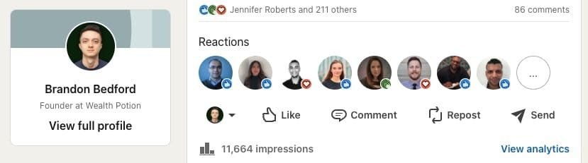 I also officially “launched” Wealth Potion to my LinkedIn network, generating over 10,000 impressions and a ton of wonderful comments. To all my new subscribers: thank you, and welcome