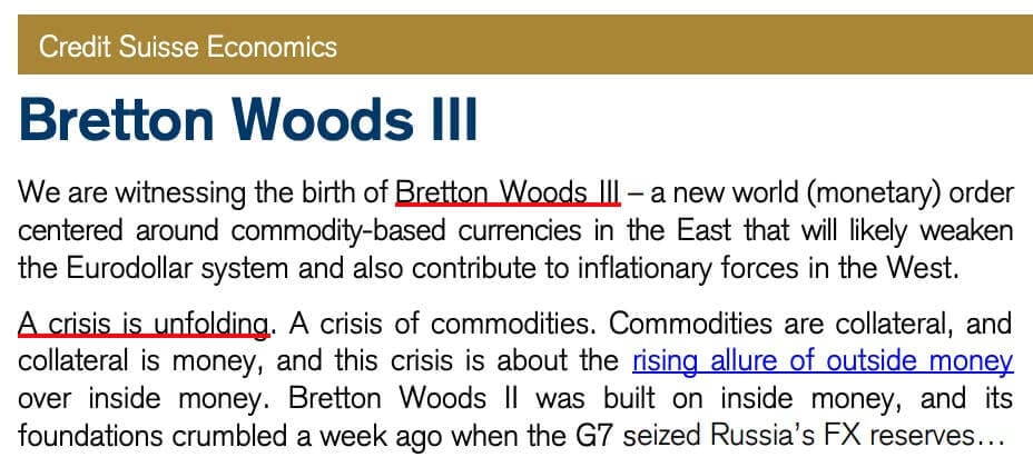 The opening paragraphs of Zoltan Poszar’s March 2022 memo entitled “Bretton Woods III”