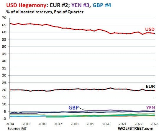 As of December 2022, ~60% of foreign exchange reserves are held in USD