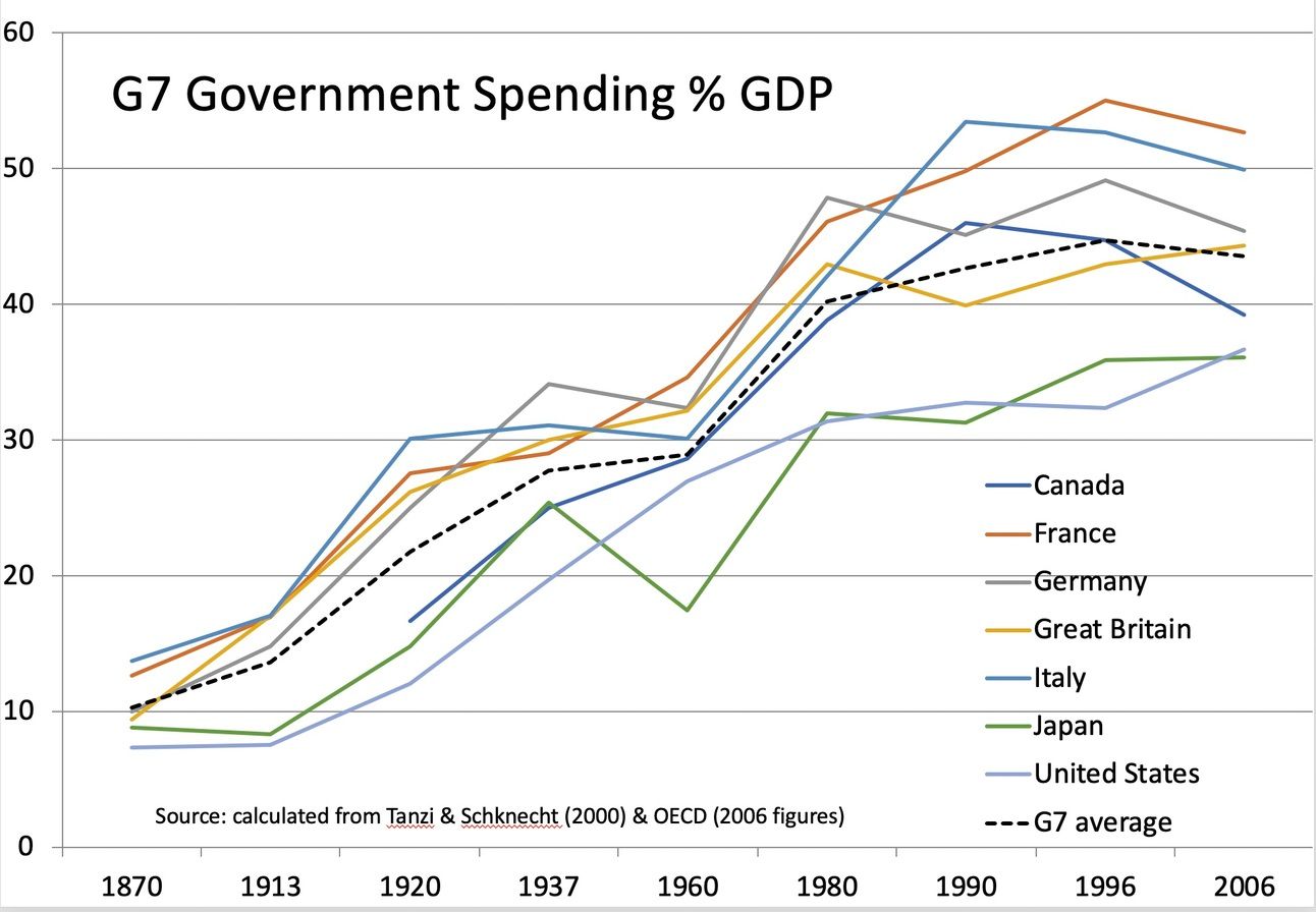 Look at the UK. Government spending has increased virtually every year since 2000.