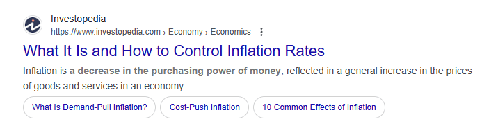 Inflation is the decrease in purchasing power of your money.