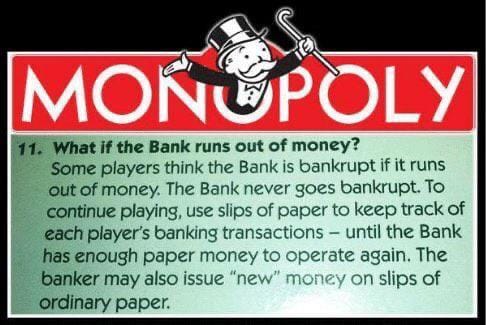 Interestingly, the bank in Monopoly works very similar to the central bank in real life…