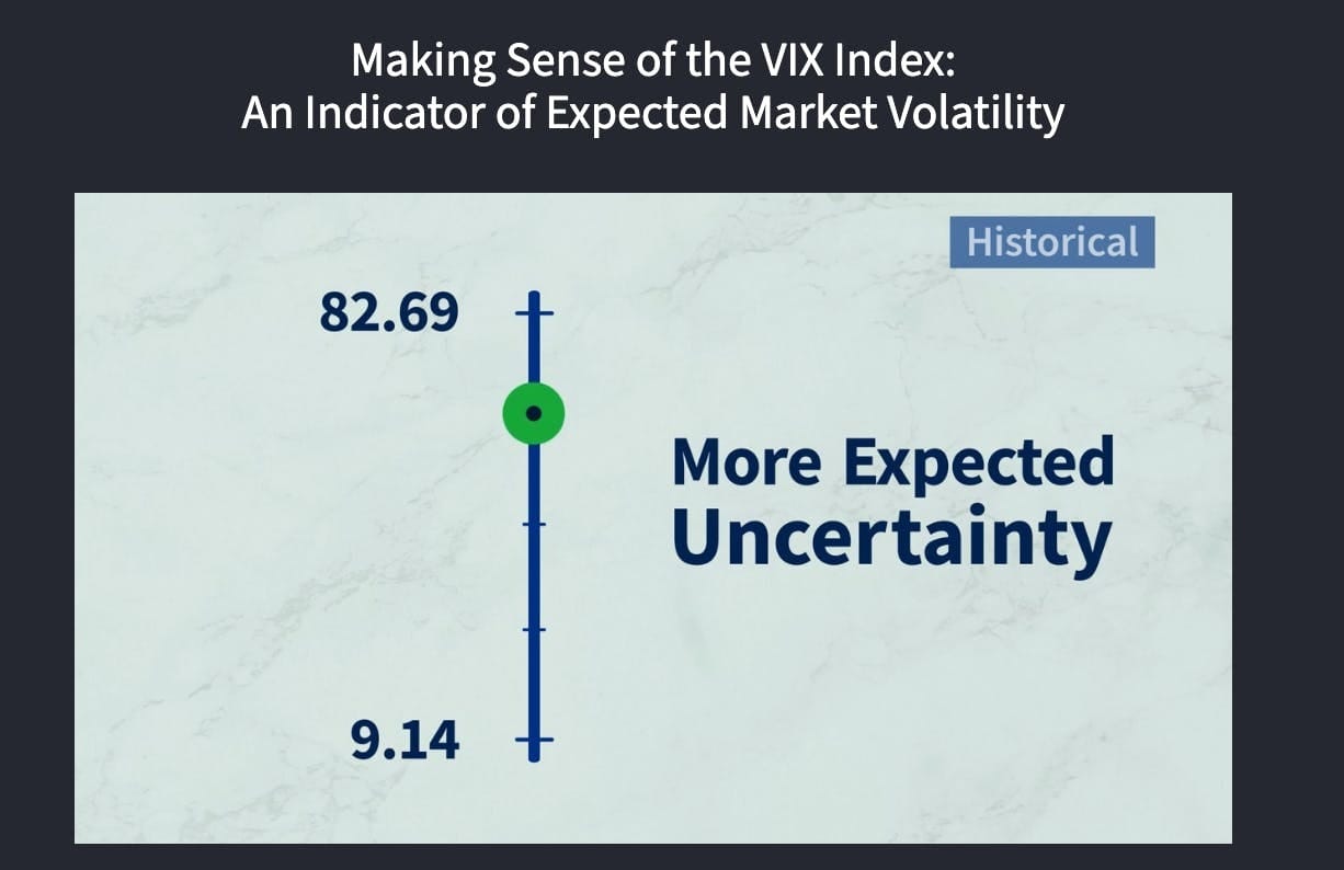 This essentially gives us the VIX. So when the VIX is high, investors are expecting lots of volatility. When the VIX is low, investors expect relatively low volatility.