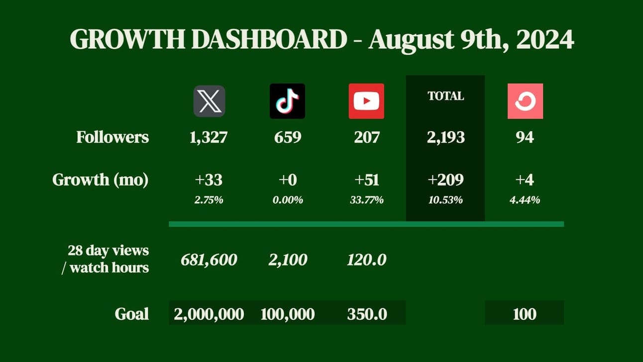 Each platform has multiple dimensions. As I focus on scaling the quality and quantity of my YouTube, I am focusing less and less on TikTok and X. In my head, this was going to be easy to juggle. But the deeper I go into YouTube, the more I have to let go of in other arenas. Focus on one thing at a time is cliche, but it’s true.
