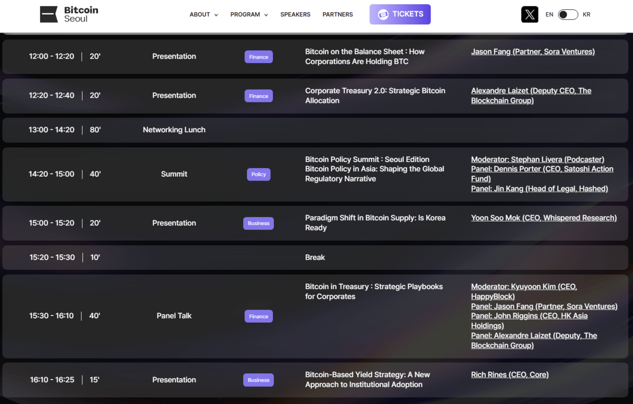 At the Seoul Bitcoin Conference alone, we had presentations and panels from: