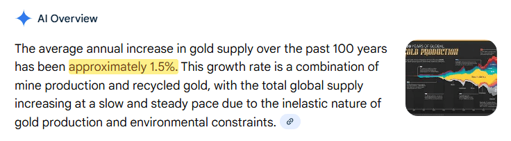 No one could produce more gold than approximately 1-2% per year, which remains the new supply rate of gold to this day.