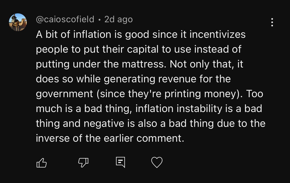 Inflation disincentives "putting (money) under the mattress” someone on YouTube replies.